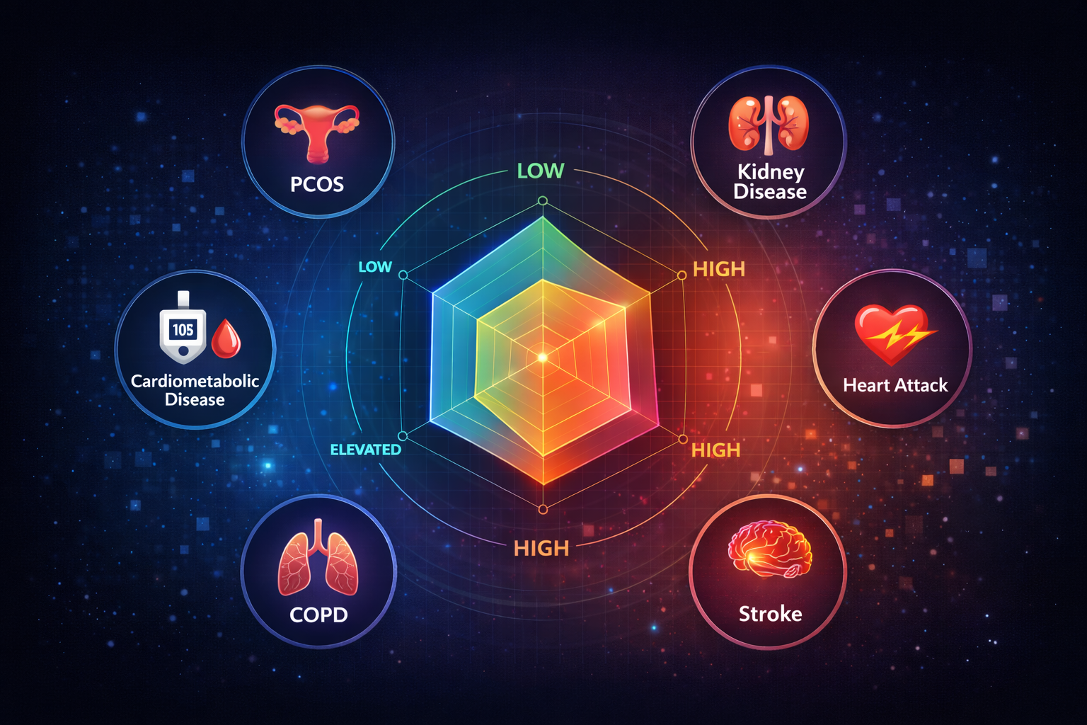 - Example: Personalized cardiometabolic risk map combining PCOS history + labs + wearables + facial scan signals